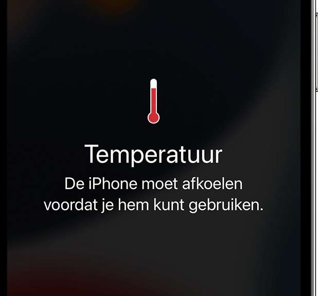 Krijg je de melding “Je iPhone is oververhit”, dan is de batterij te warm geweest. Dit is schadelijk voor het behoud van een hoge batterij maximumcapaciteit en kan de levensduur verkorten.